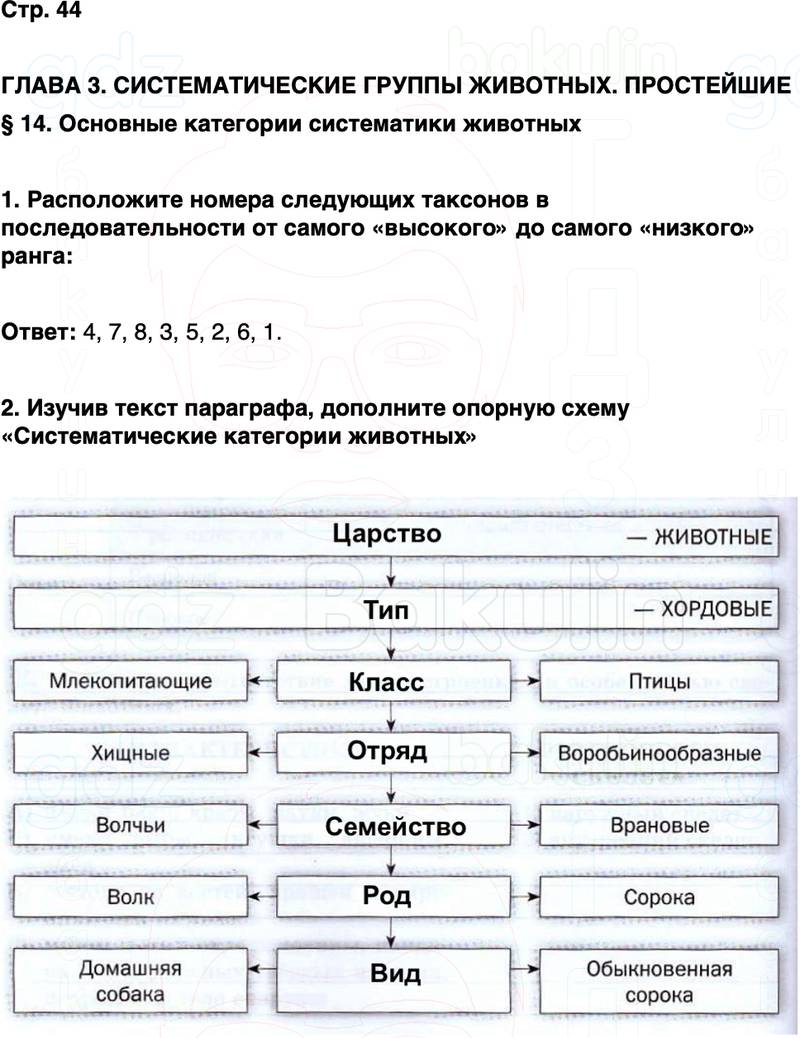 2. Изучив текст параграфа, дополните опорную схему «Систематические категории животных»