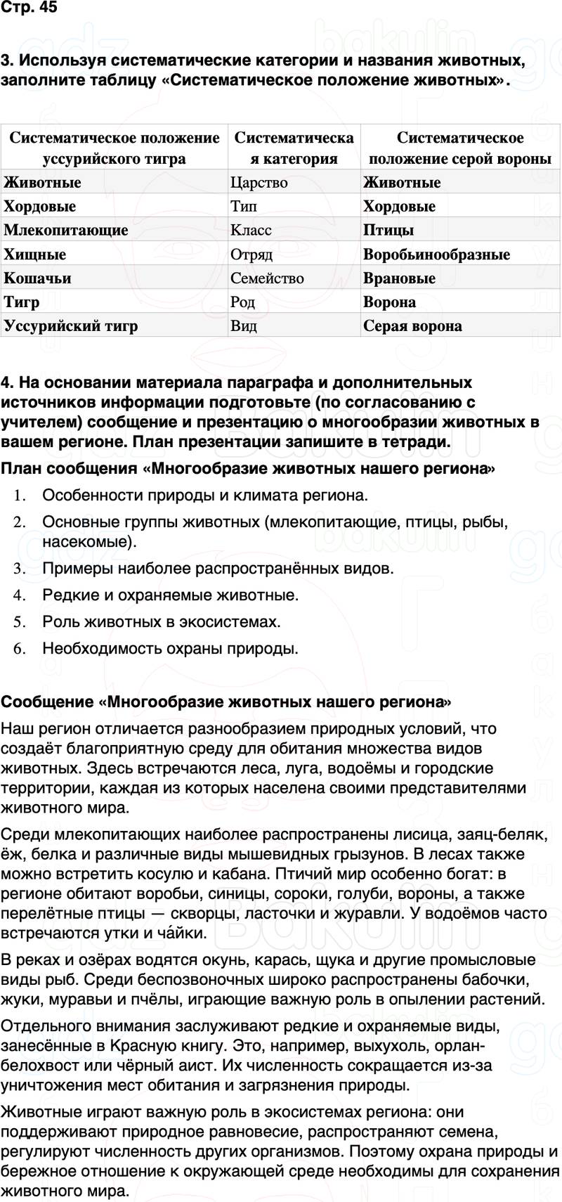 4. На основании материала параграфа и дополнительных источников информации подготовьте (по согласованию с учителем) сообщение и презентацию о многообразии животных в вашем регионе. План презентации запишите в тетради.