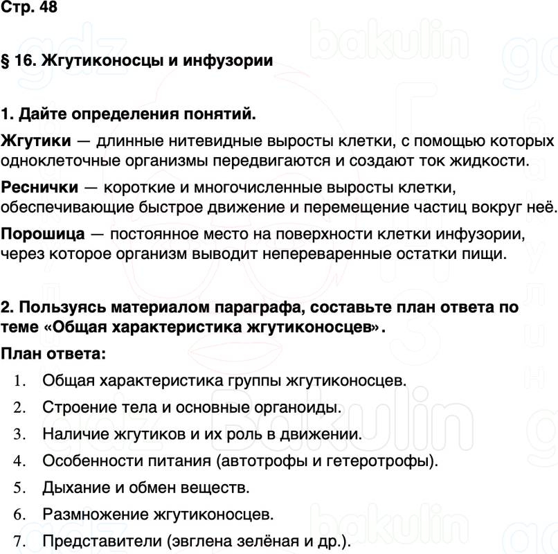 2. Пользуясь материалом параграфа, составьте план ответа по теме «Общая характеристика жгутиконосцев». План ответа: