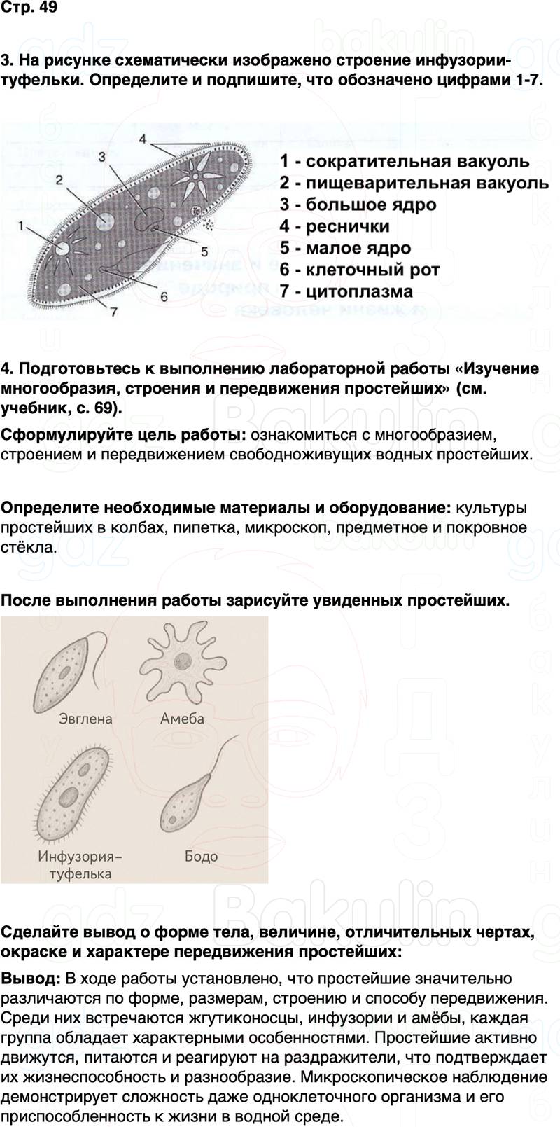 4. Подготовьтесь к выполнению лабораторной работы «Изучение многообразия, строения и передвижения простейших» (см. учебник, с. 69).