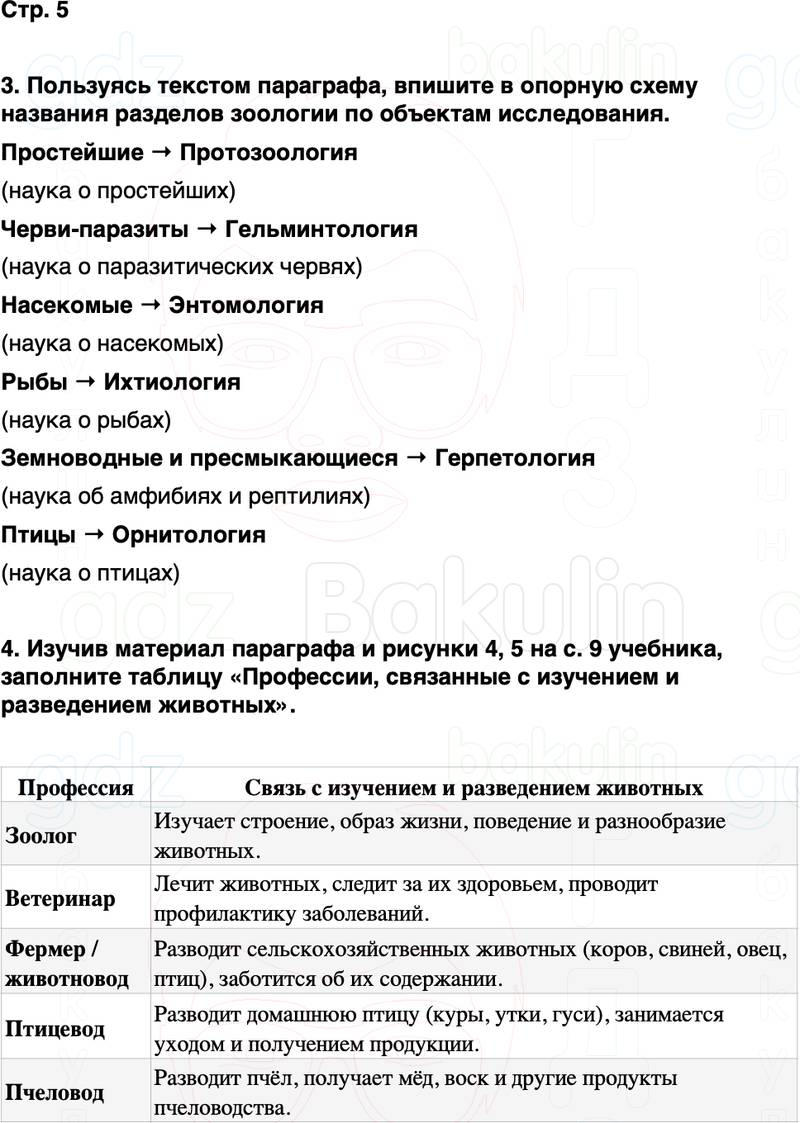4. Изучив материал параграфа и рисунки 4, 5 на с. 9 учебника, заполните таблицу «Профессии, связанные с изучением и разведением животных».
