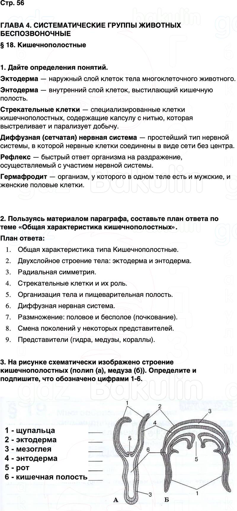 2. Пользуясь материалом параграфа, составьте план ответа по теме «Общая характеристика кишечнополостных».
