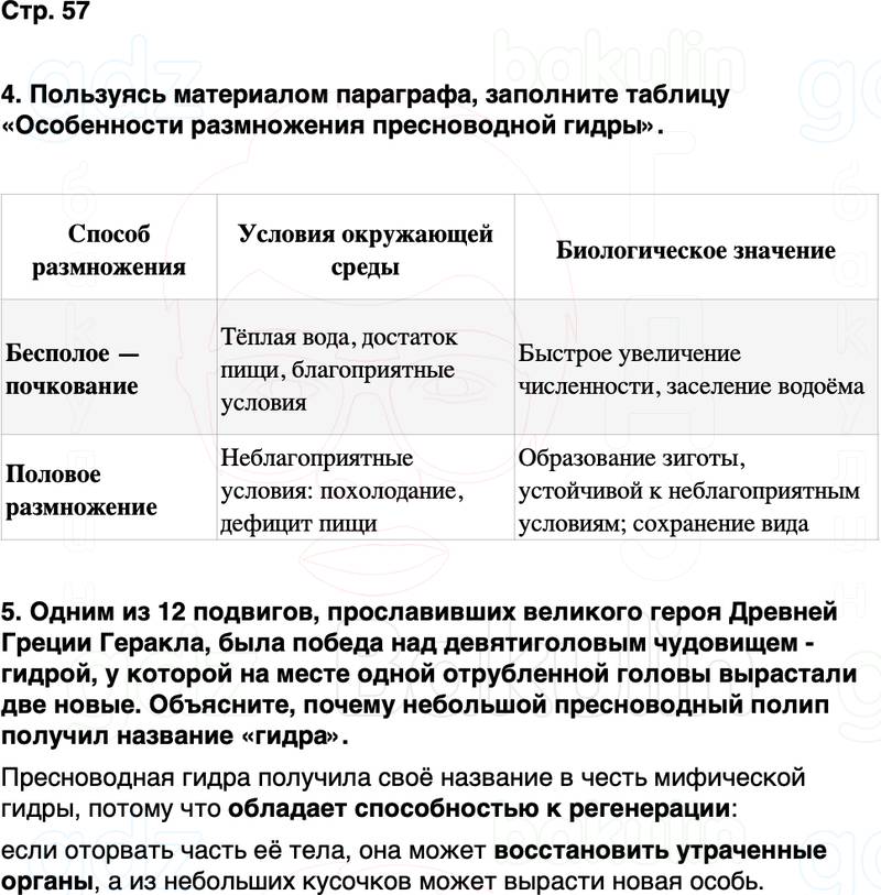 4. Пользуясь материалом параграфа, заполните таблицу «Особенности размножения пресноводной гидры».