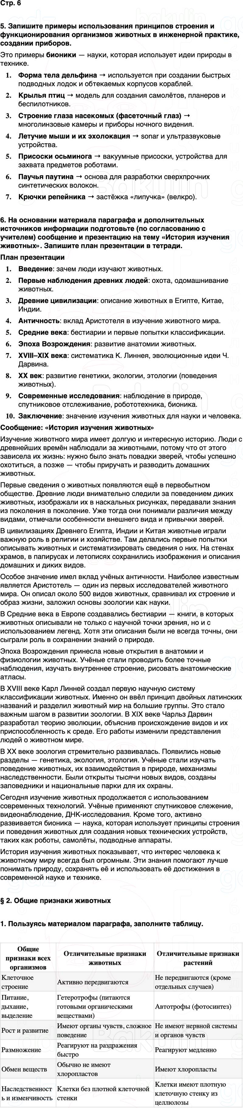 6. На основании материала параграфа и дополнительных источников информации подготовьте (по согласованию с учителем) сообщение и презентацию на тему «История изучения животных». Запишите план презентации в тетради.
