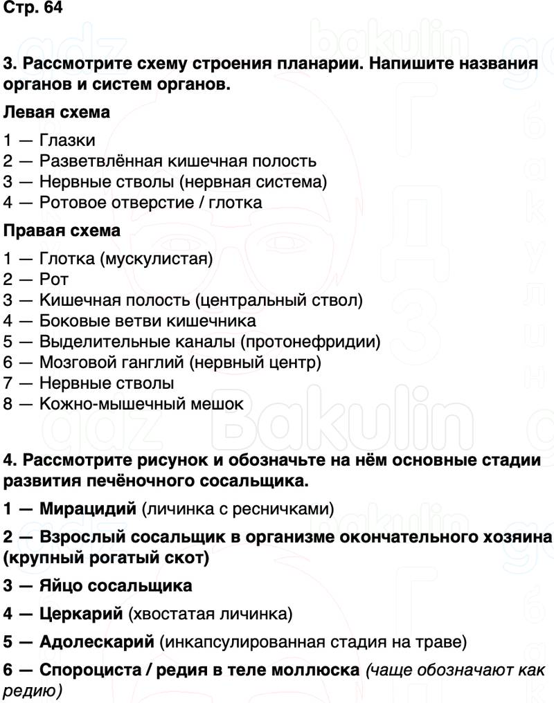 3. Рассмотрите схему строения планарии. Напишите названия органов и систем органов.