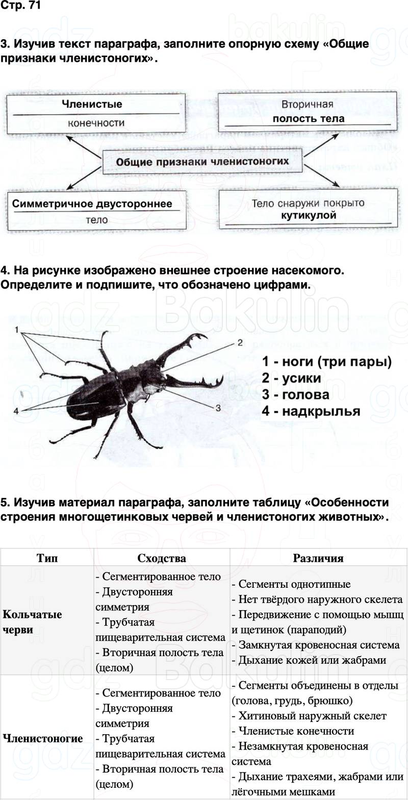 5. Изучив материал параграфа, заполните таблицу «Особенности строения многощетинковых червей и членистоногих животных».