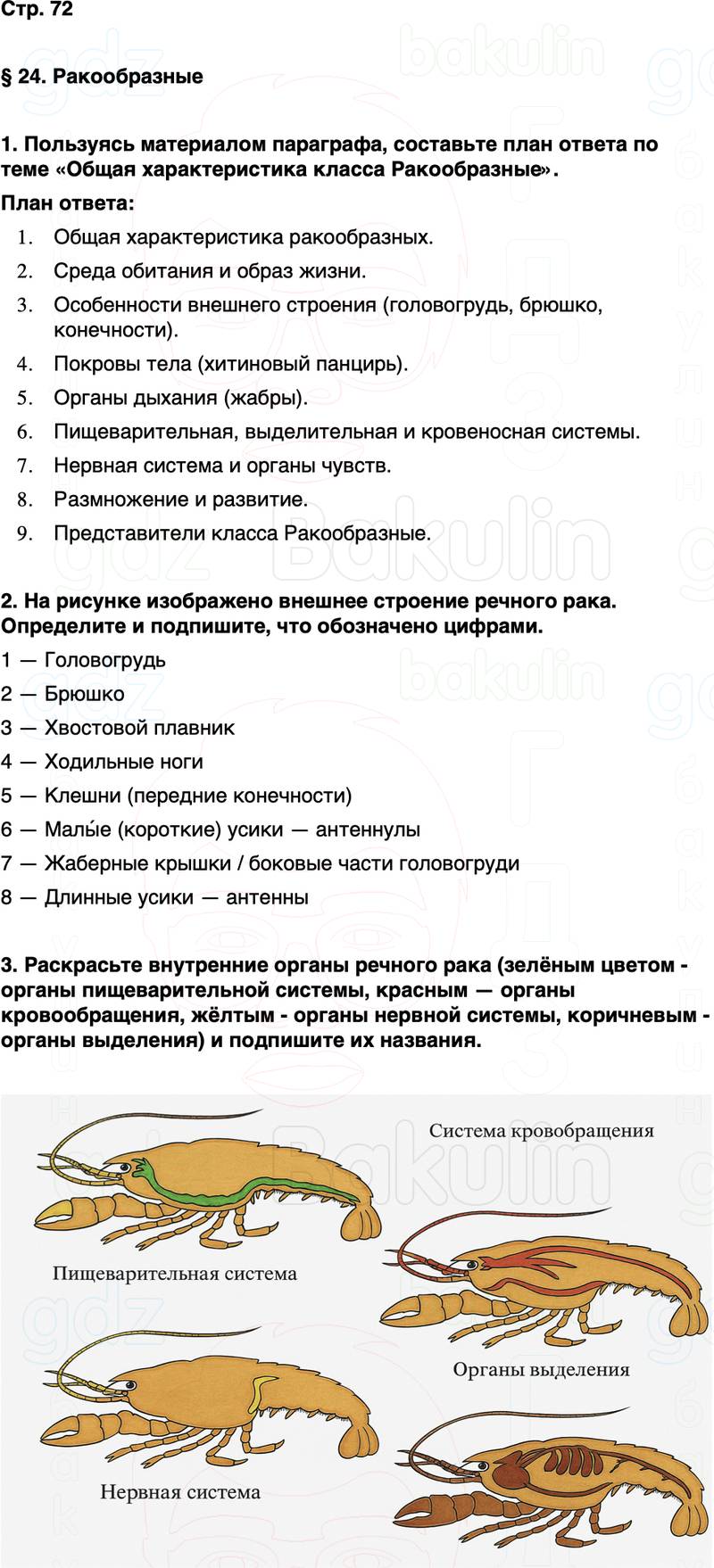 1. Пользуясь материалом параграфа, составьте план ответа по теме «Общая характеристика класса Ракообразные».