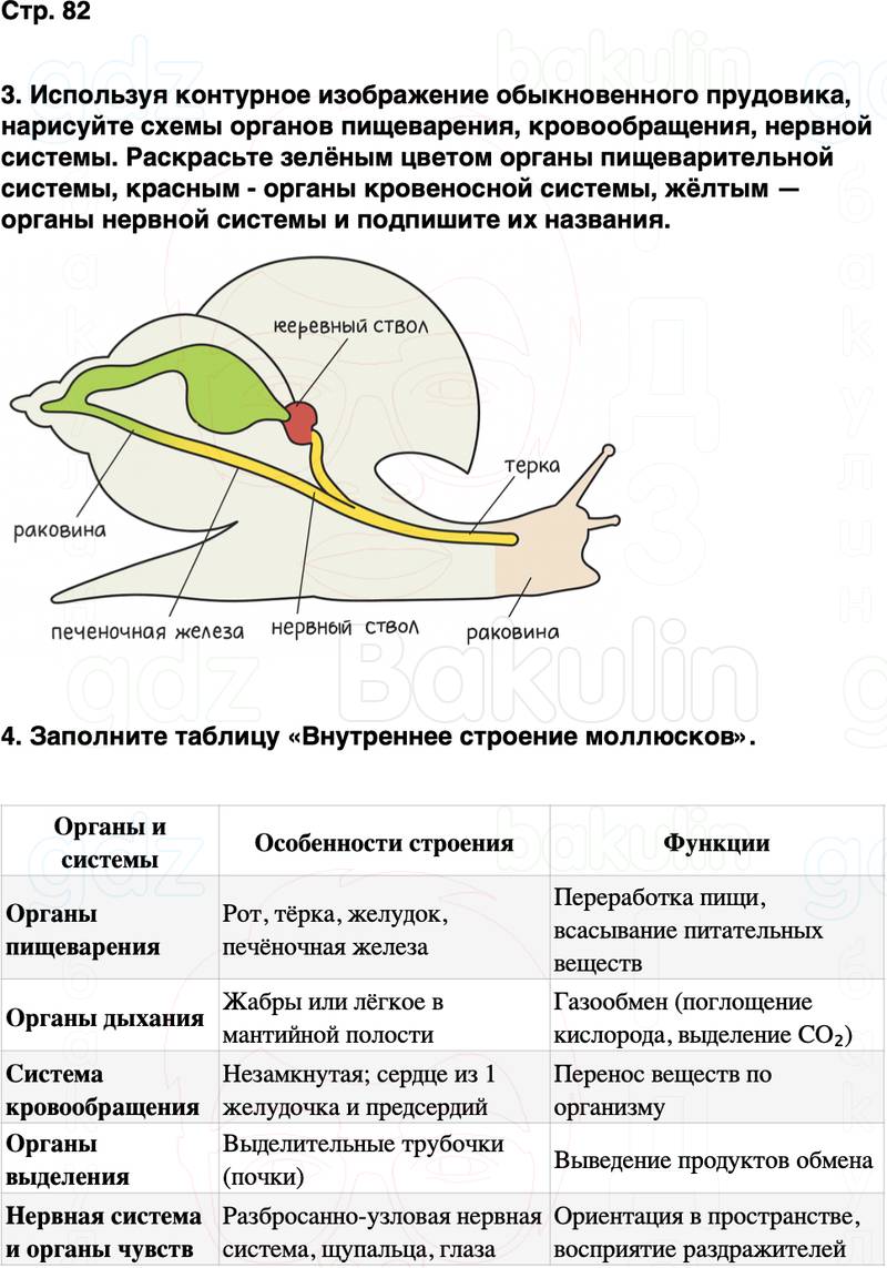 4. Заполните таблицу «Внутреннее строение моллюсков».