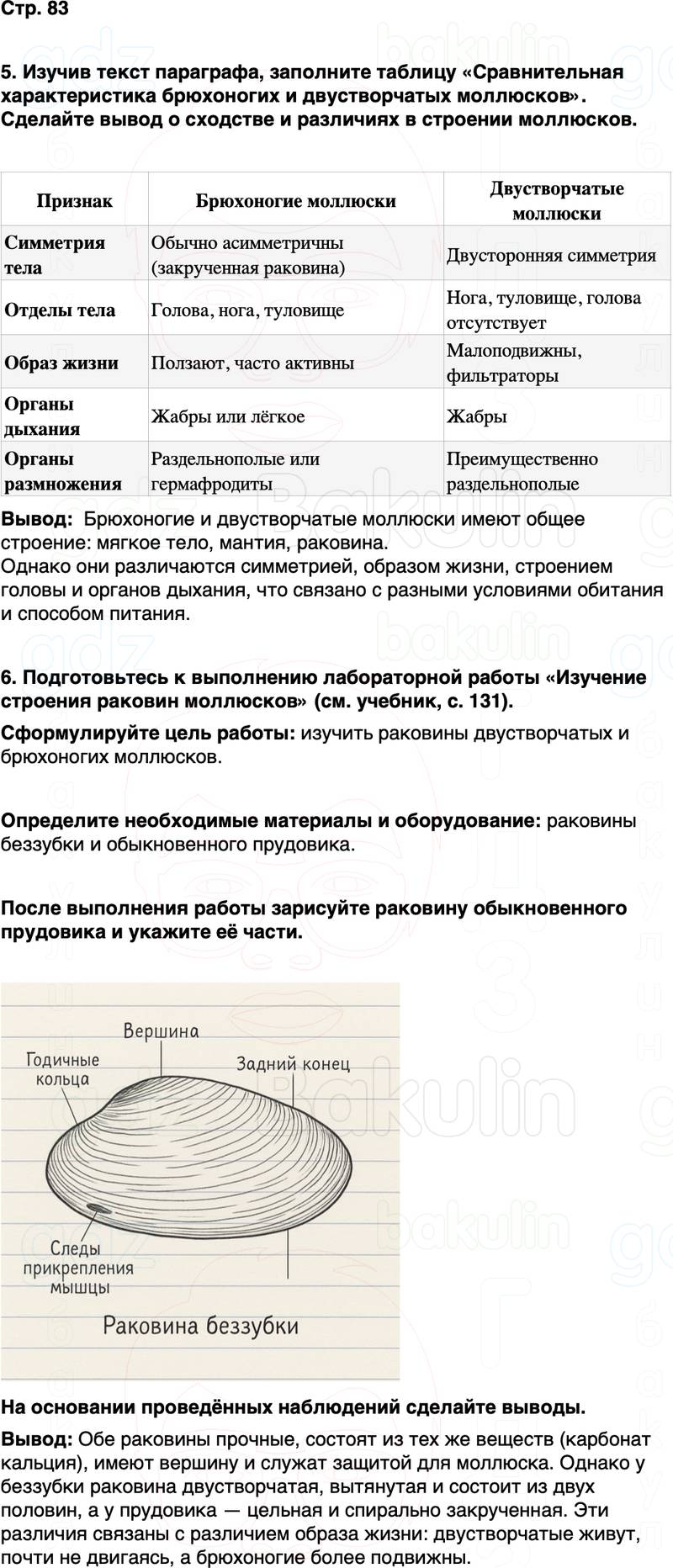 6. Подготовьтесь к выполнению лабораторной работы «Изучение строения раковин моллюсков» (см. учебник, с. 131).