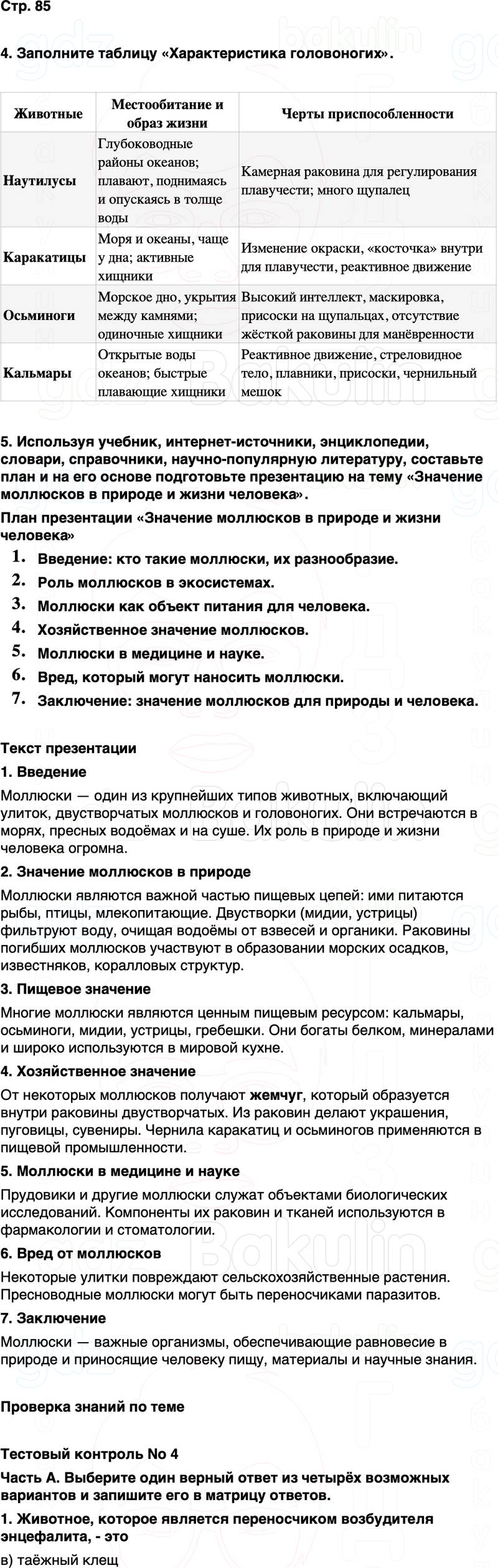 5. Используя учебник, интернет-источники, энциклопедии, словари, справочники, научно-популярную литературу, составьте план и на его основе подготовьте презентацию на тему «Значение моллюсков в природе и жизни человека».
