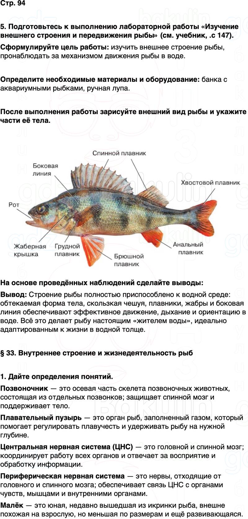 5. Подготовьтесь к выполнению лабораторной работы «Изучение внешнего строения и передвижения рыбы» (см. учебник, .с 147).