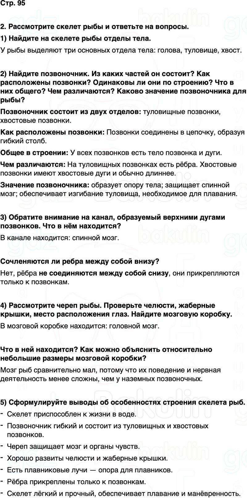 2. Рассмотрите скелет рыбы и ответьте на вопросы.