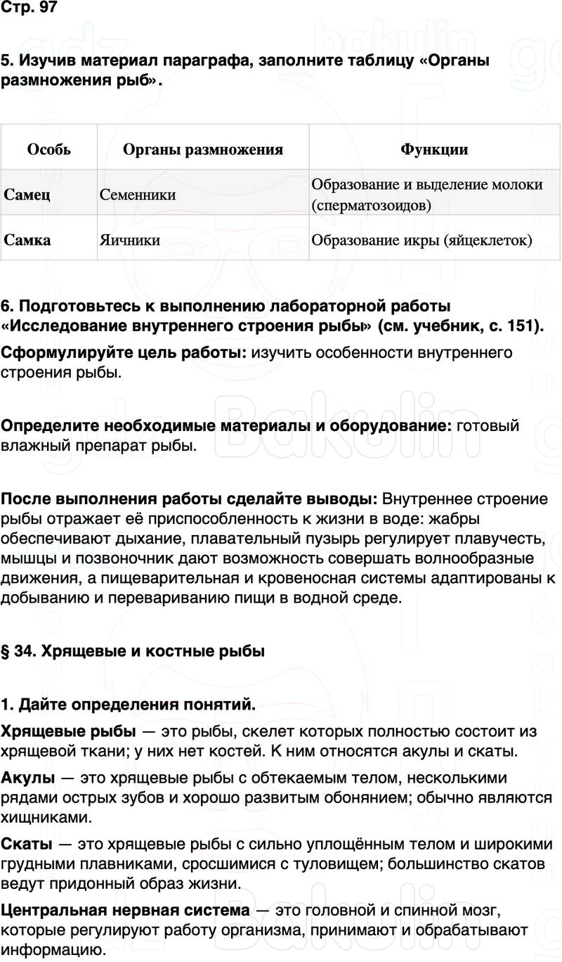 6. Подготовьтесь к выполнению лабораторной работы «Исследование внутреннего строения рыбы» (см. учебник, с. 151).