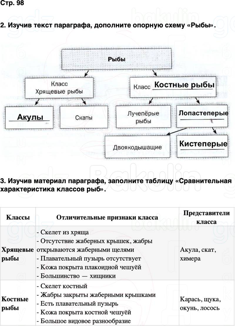2. Изучив текст параграфа, дополните опорную схему «Рыбы».
