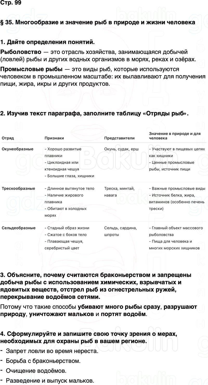 § 35. Многообразие и значение рыб в природе и жизни человека
