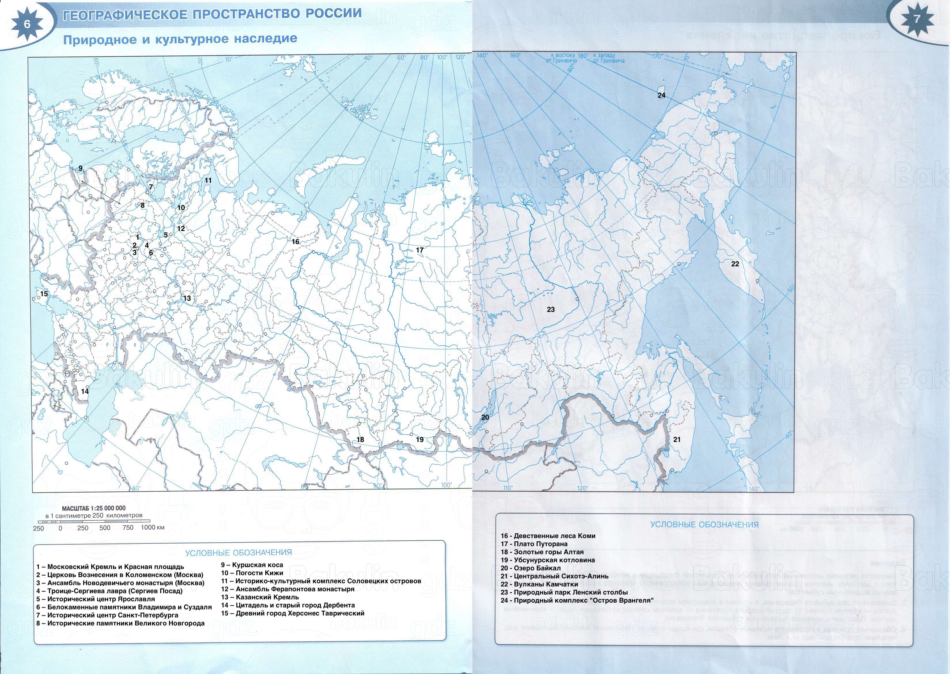 Контурная карта Природное и культурное наследие Стр. 6-7