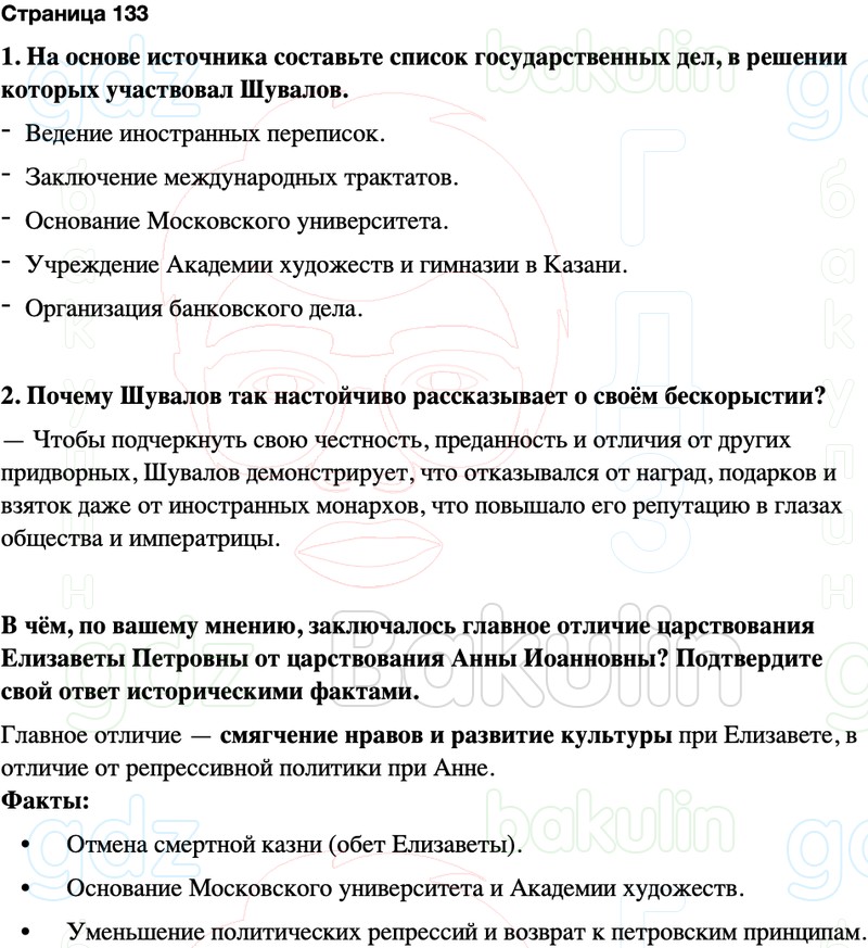 1. На основе источника составьте список государственных дел, в решении которых участвовал Шувалов.