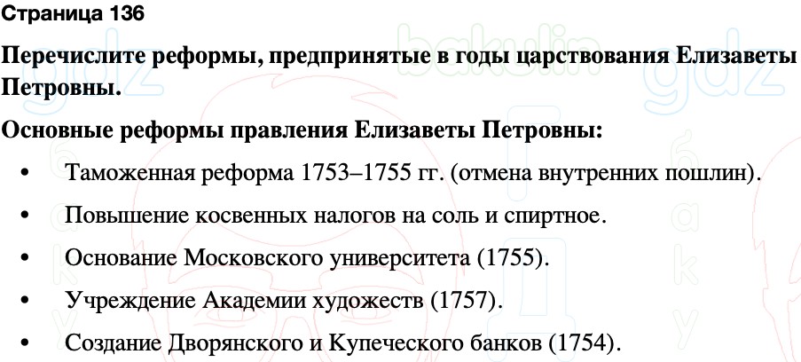 Перечислите реформы, предпринятые в годы царствования Елизаветы Петровны.