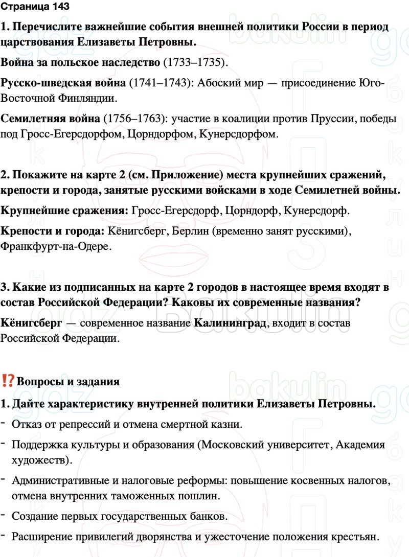 1. Перечислите важнейшие события внешней политики России в период царствования Елизаветы Петровны.