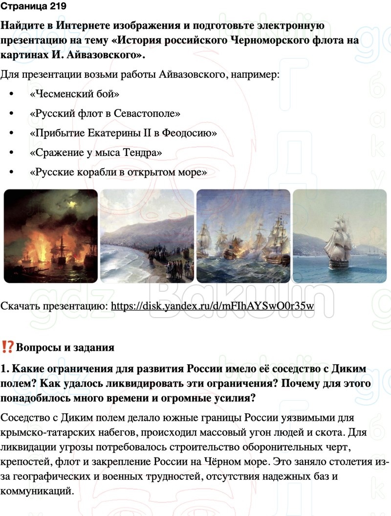 Найдите в Интернете изображения и подготовьте электронную презентацию на тему «История российского Черноморского флота на картинах И. Айвазовского».