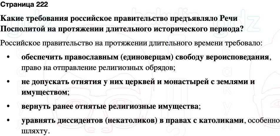 Какие требования российское правительство предъявляло Речи Посполитой на протяжении длительного исторического периода?
