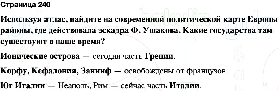 Используя атлас, найдите на современной политической карте Европы районы, где действовала эскадра Ф. Ушакова. Какие государства там существуют в наше время?