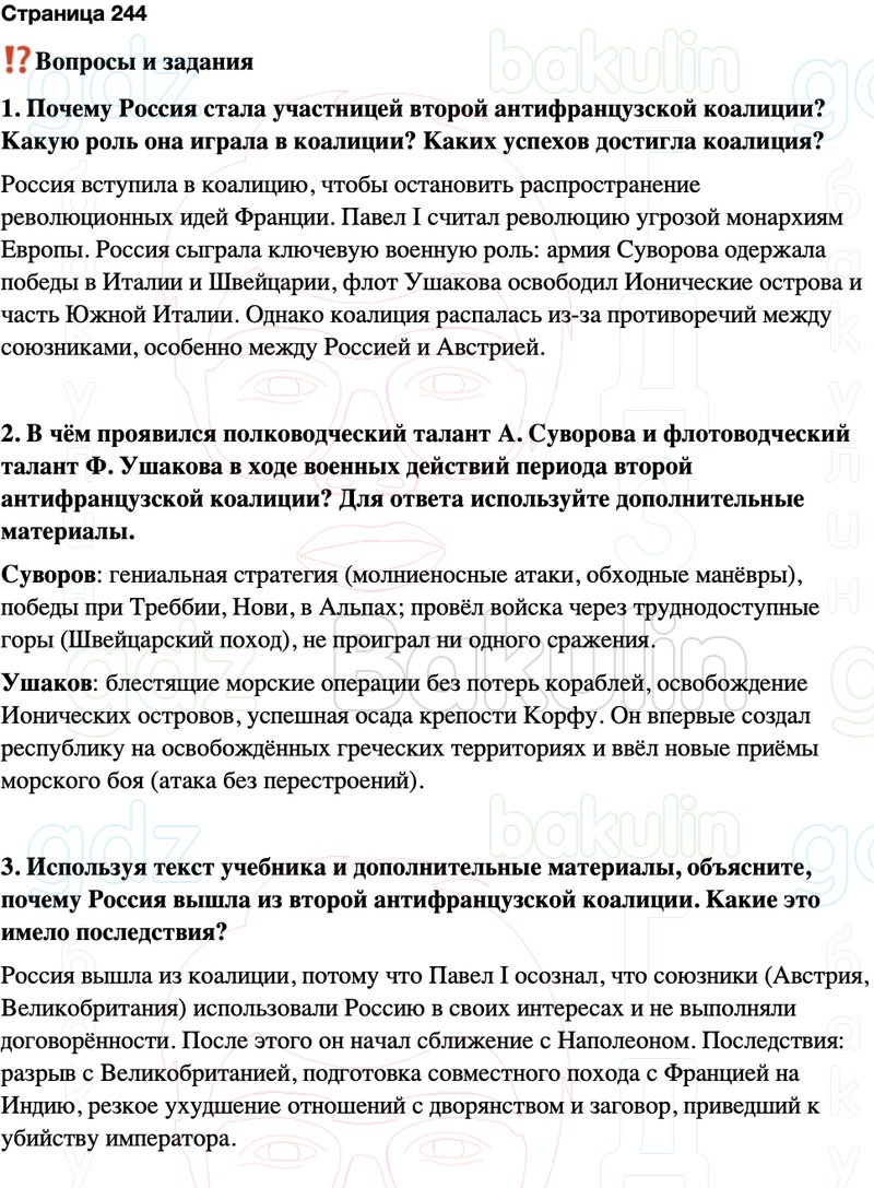 3. Используя текст учебника и дополнительные материалы, объясните, почему Россия вышла из второй антифранцузской коалиции. Какие это имело последствия?