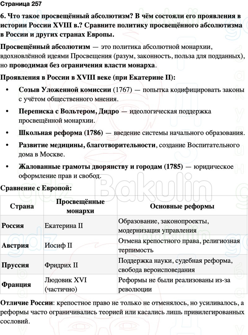 6. Что такое просвещённый абсолютизм? В чём состояли его проявления в истории России XVIII в.? Сравните политику просвещённого абсолютизма в России и других странах Европы.