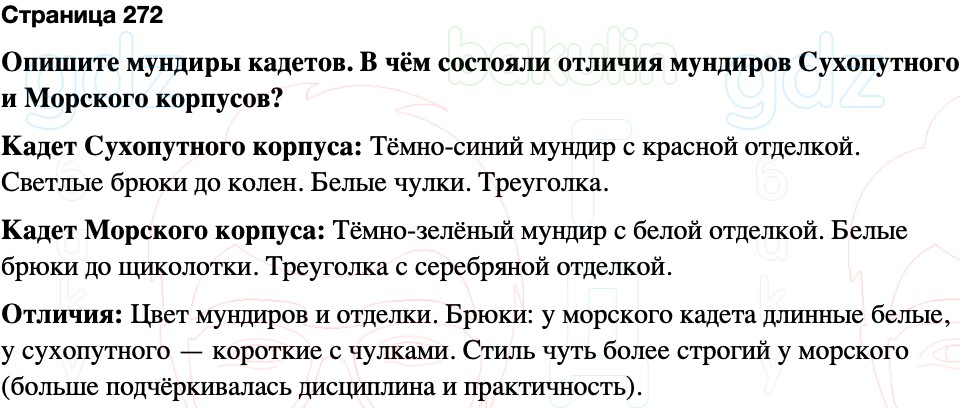 Опишите мундиры кадетов. В чём состояли отличия мундиров Сухопутного и Морского корпусов?