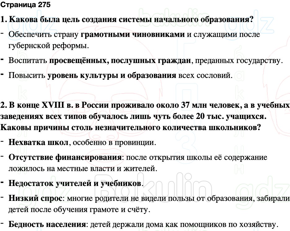 2. В конце XVIII в. в России проживало около 37 млн человек, а в учебных заведениях всех типов обучалось лишь чуть более 20 тыс. учащихся. Каковы причины столь незначительного количества школьников?