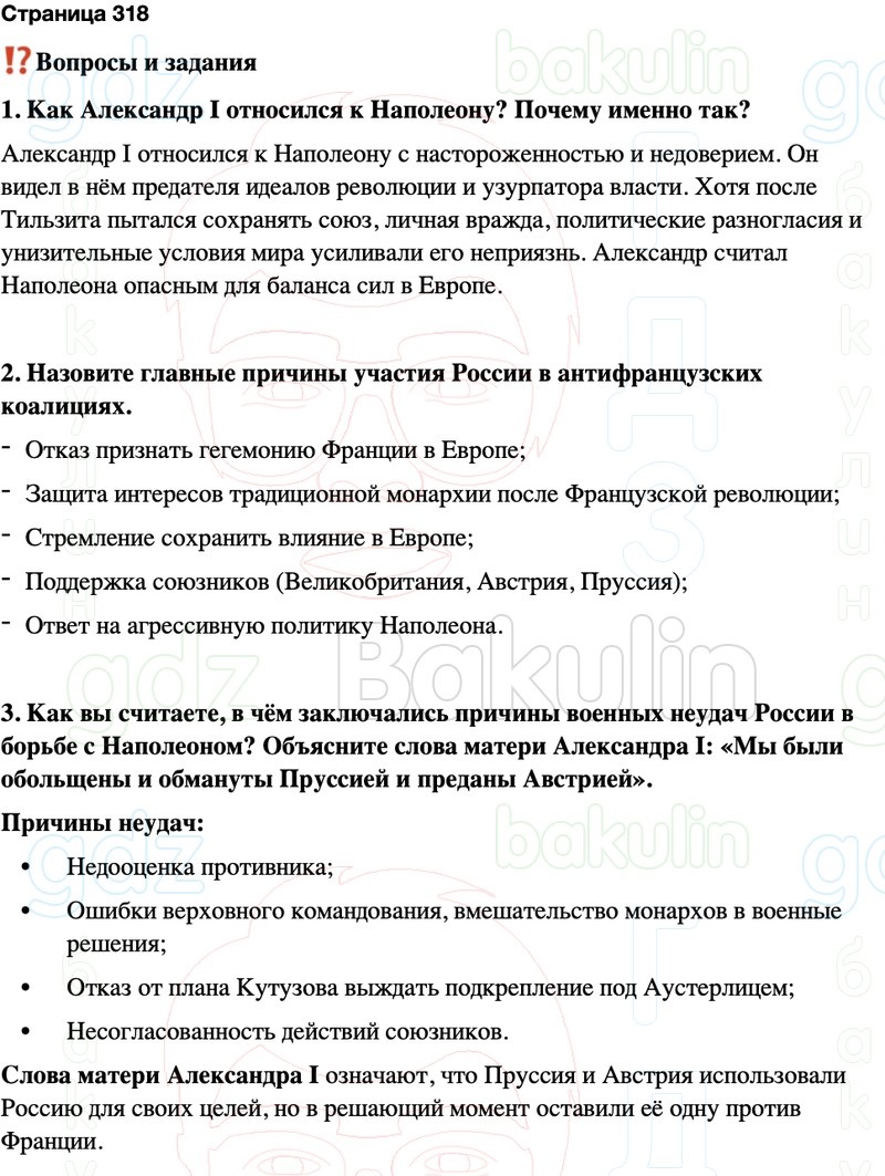 3. Как вы считаете, в чём заключались причины военных неудач России в борьбе с Наполеоном? Объясните слова матери Александра І: «Мы были обольщены и обмануты Пруссией и преданы Австрией».