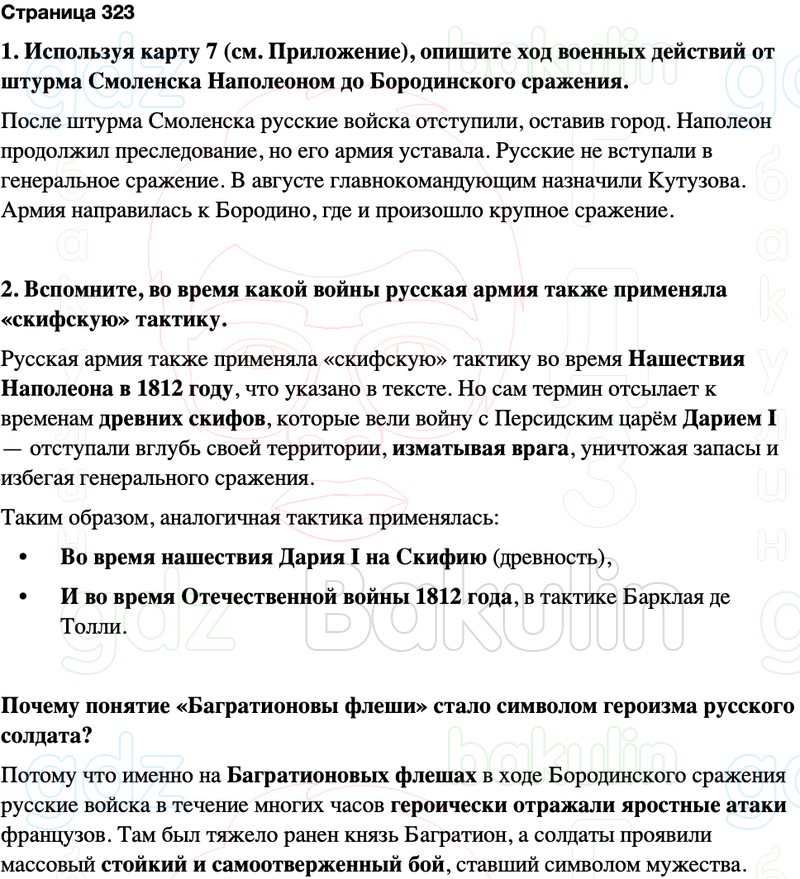1. Используя карту 7 (см. Приложение), опишите ход военных действий от штурма Смоленска Наполеоном до Бородинского сражения.