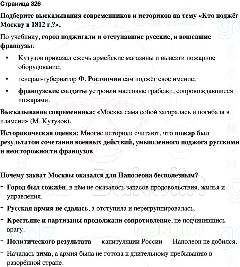 Подберите высказывания современников и историков на тему «Кто поджёг Москву в 1812 г.?».