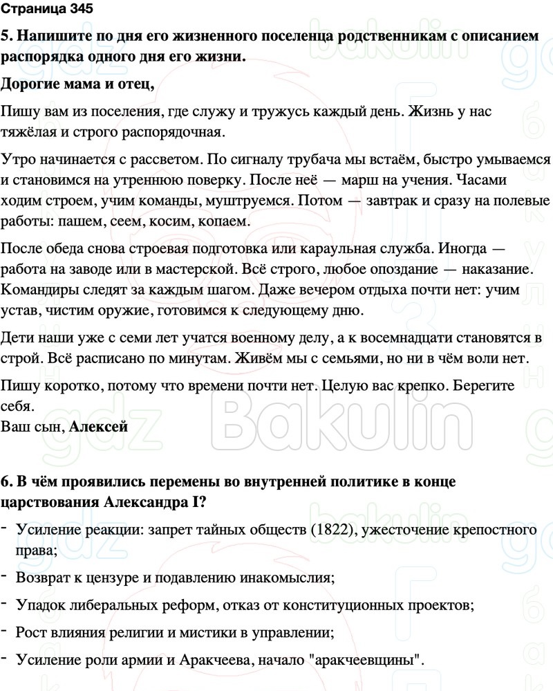 5. Напишите по дня его жизненного поселенца родственникам с описанием распорядка одного дня его жизни.