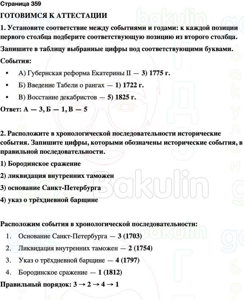 2. Расположите в хронологической последовательности исторические события. Запишите цифры, которыми обозначены исторические события, в правильной последовательности. 1) Бородинское сражение 2) ликвидация внутренних таможен 3) основание Санкт-Петербурга 4) указ о трёхдневной барщине