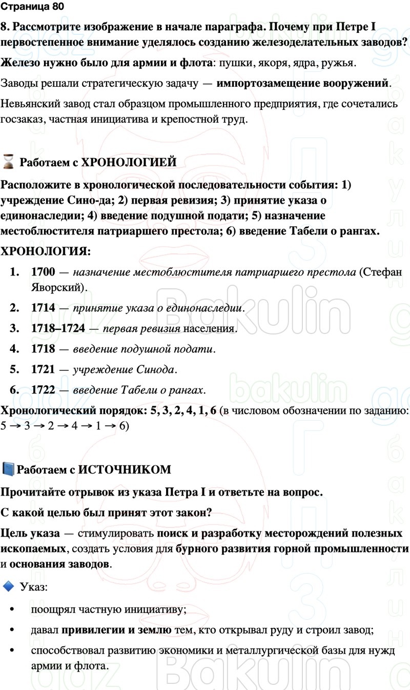 8. Рассмотрите изображение в начале параграфа. Почему при Петре I первостепенное внимание уделялось созданию железоделательных заводов?