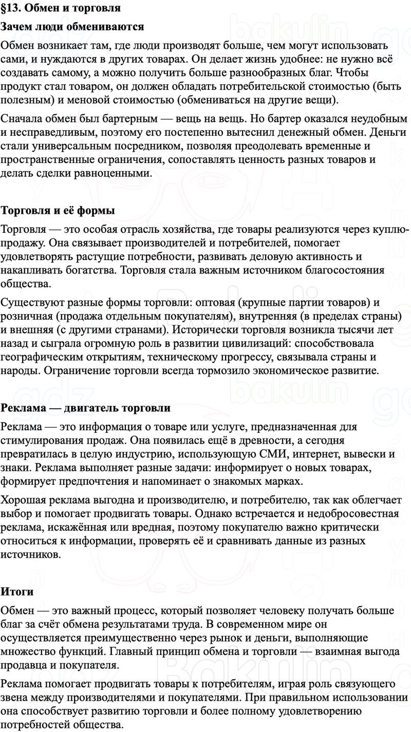 Краткое содержание пересказ Параграф 13. Обмен и торговля