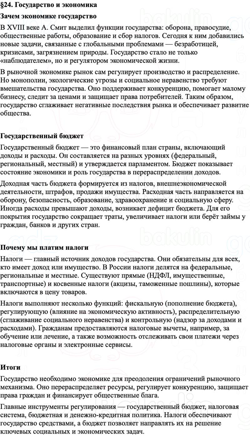 Краткое содержание пересказ Параграф 24. Государство и экономика