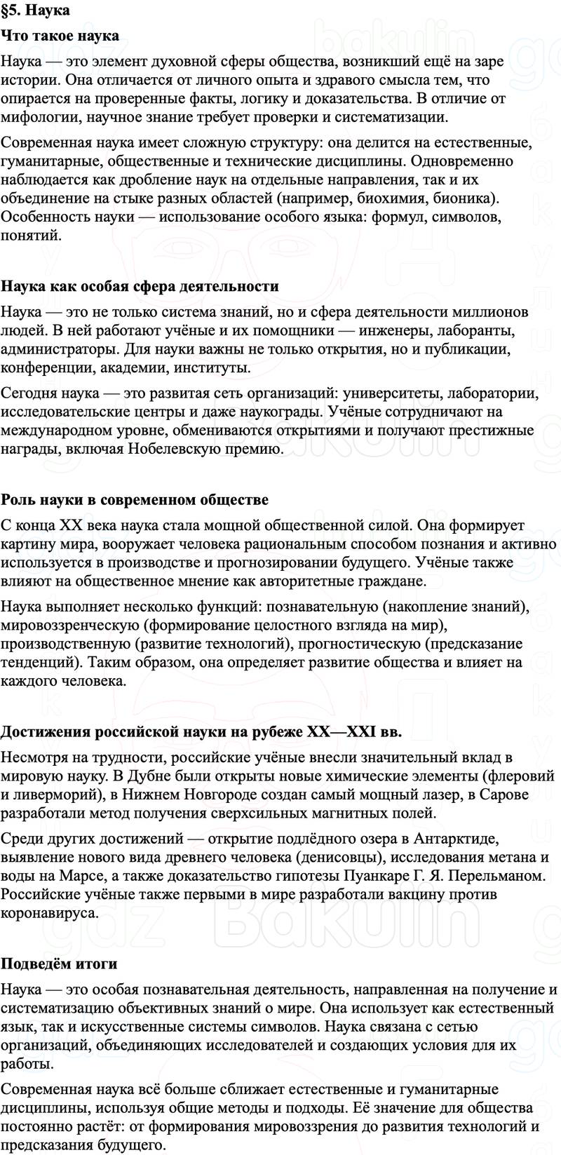 Правильный ответ к заданию Краткий пересказ содержание Обществознание 8 класс Боголюбов конспекты Параграф, номер 5 бесплатно онлайн