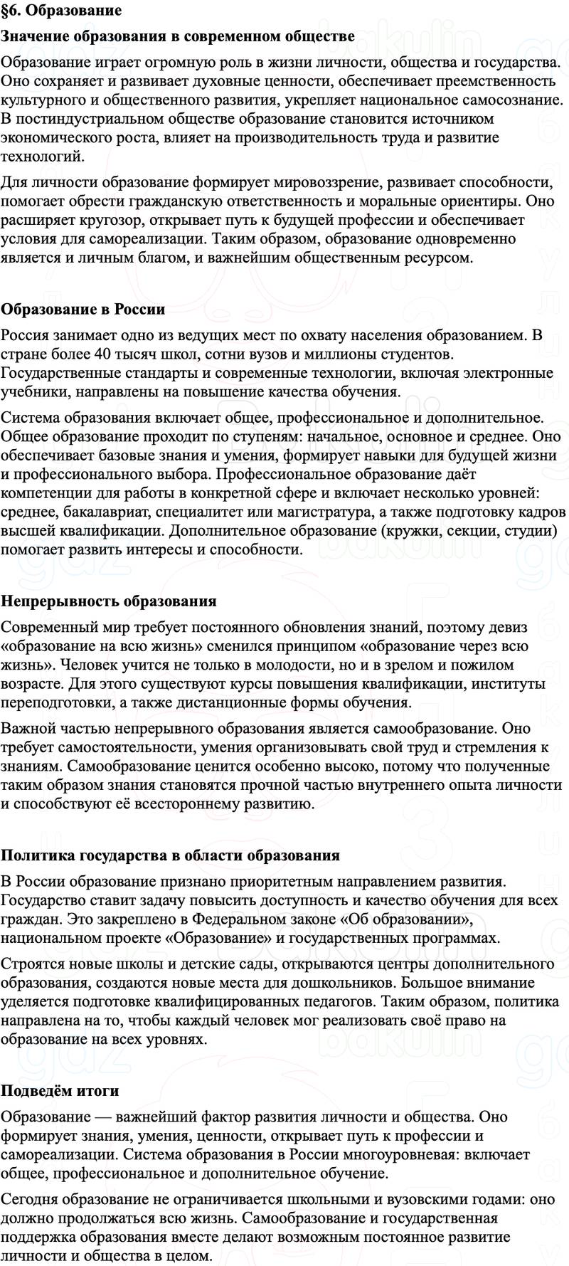 Краткое содержание пересказ Параграф 6. Образование