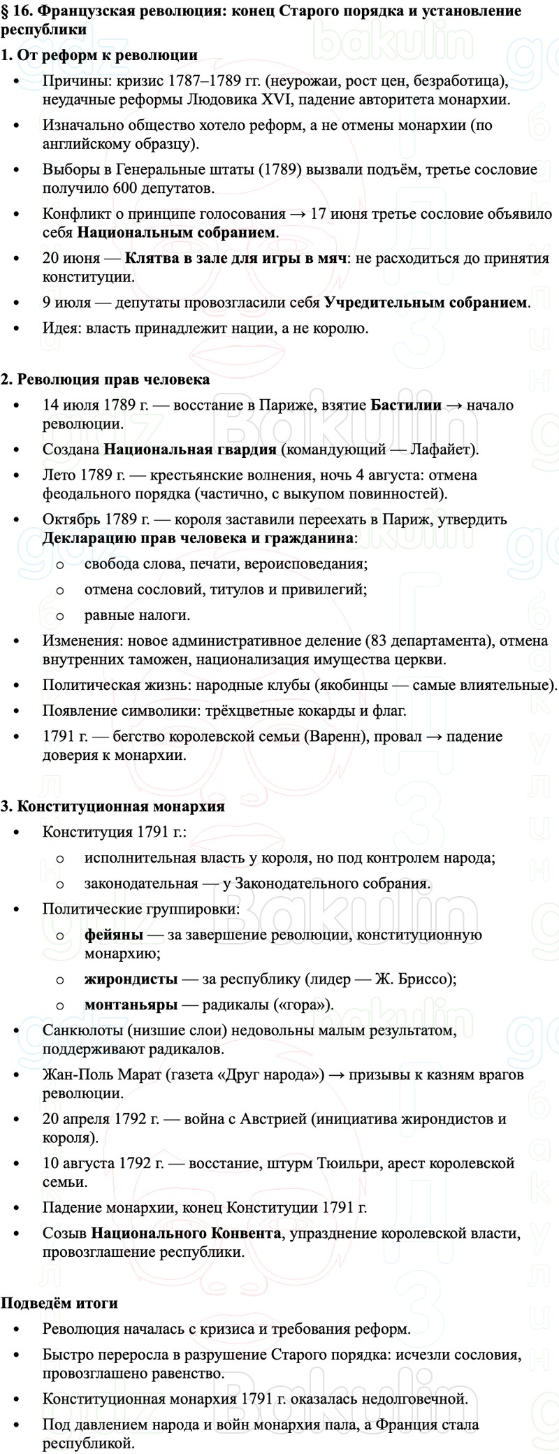 Краткое содержание и пересказ Параграф 16 Французская революция: конец Старого порядка и установление республики