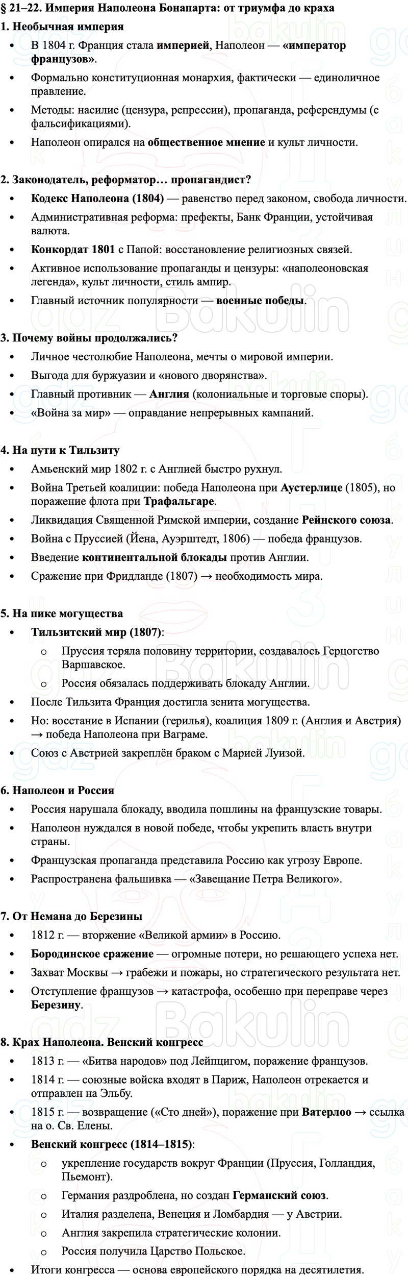 Краткое содержание и пересказ Параграф 21–22 Империя Наполеона Бонапарта: от триумфа до краха