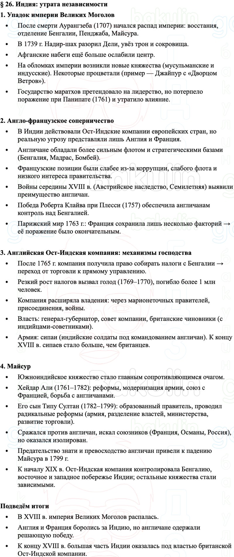 Краткое содержание и пересказ Параграф 26 Индия: утрата независимости