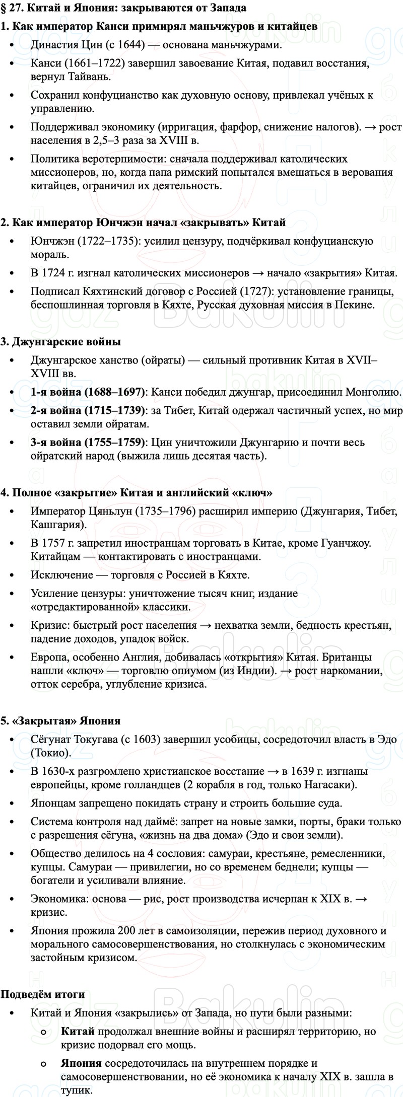 Краткое содержание и пересказ Параграф 27 Китай и Япония: закрываются от Запада