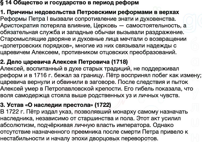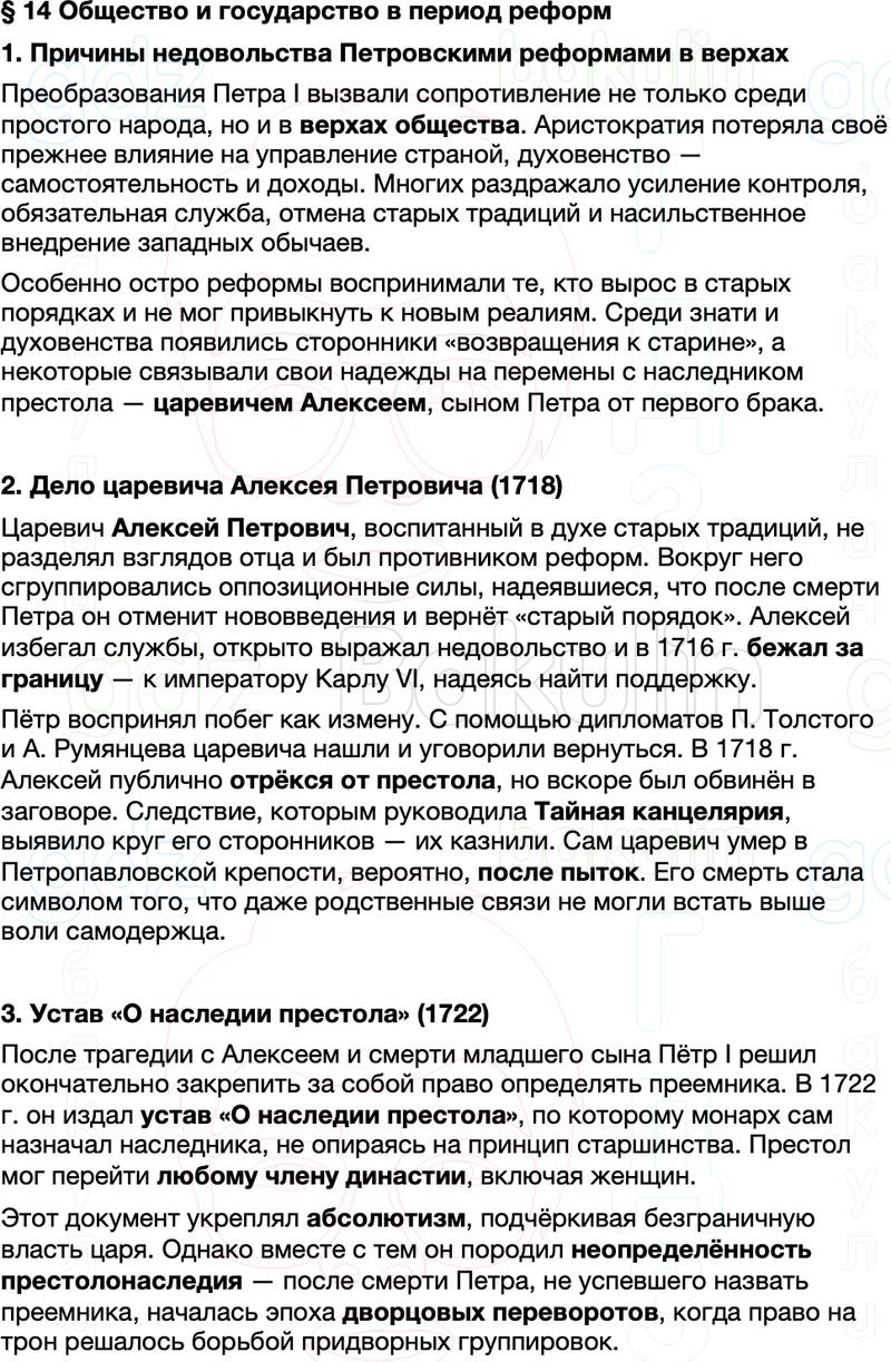 Краткое содержание §14. Общество и государство в период реформ по истории России 8 класс Мединский, Торкунов представлено в двух видах: развернутое и кратчайшее содержание параграфа. Скорость прочтения материала от 3 до 7 минут.