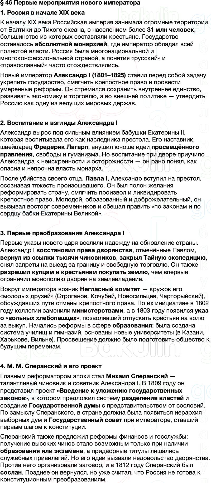 Краткое содержание §46. Первые мероприятия нового императора по истории России 8 класс Мединский, Торкунов представлено в двух видах: развернутое и кратчайшее содержание параграфа. Скорость прочтения материала от 3 до 7 минут.