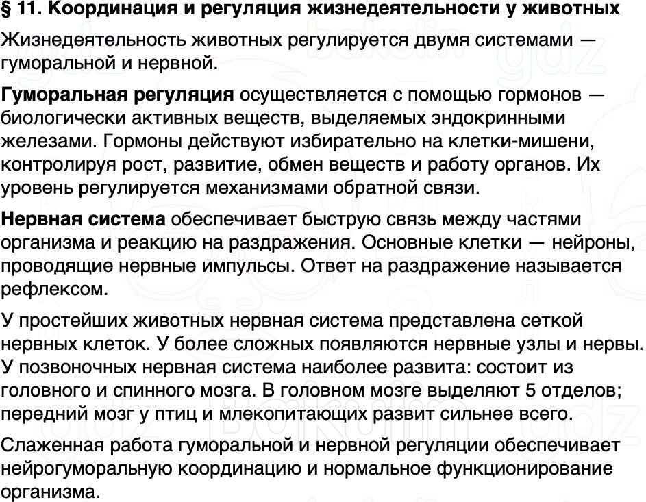 Краткое содержание Параграф 11 Координация и регуляция жизнедеятельности у животных