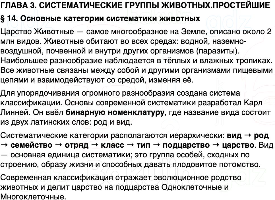 Краткое содержание Параграф 14 Основные категории систематики животных