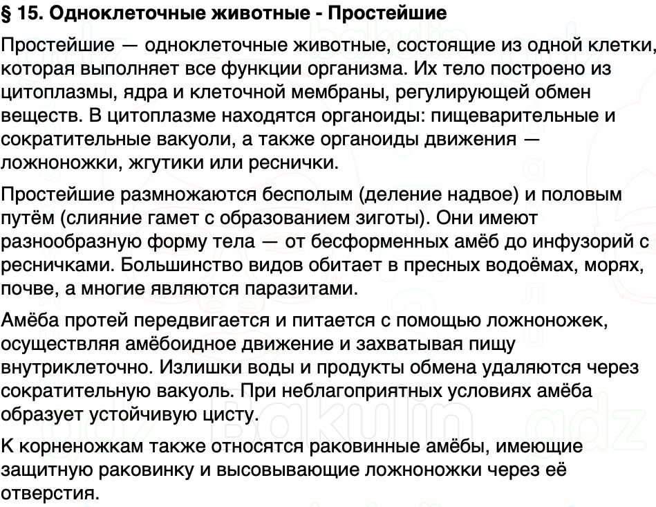 Краткое содержание Параграф 15 Одноклеточные животные - Простейшие