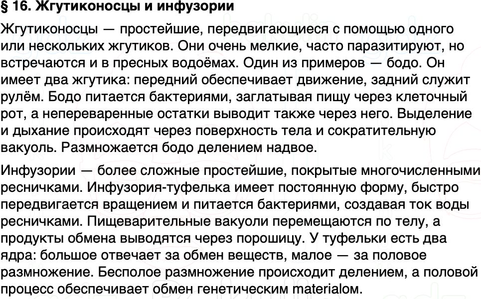 Краткое содержание Параграф 16 Жгутиконосцы и инфузории